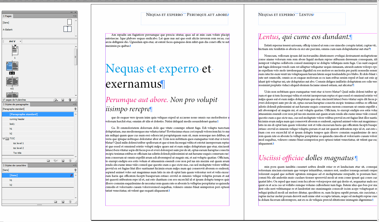 The problem is that when you generate a Table of Contents, the header will pick up HeadText2 and insert in the header, as the entries in the Table of Contents all have the HeadText1 and HeadText2 character styles. While keeping character styles is a good default… people might want to keep them in the Table of Contents… there should be a checkbox for "strip character styles" for documents where you are using this best practice for running headers.