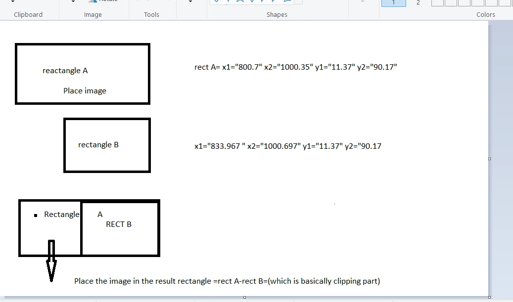i am available to get the bounds for both the reactangles but not sure how to get the result reactangle and also how to place image in the resultanted rectangle please the attachment for proper understanding