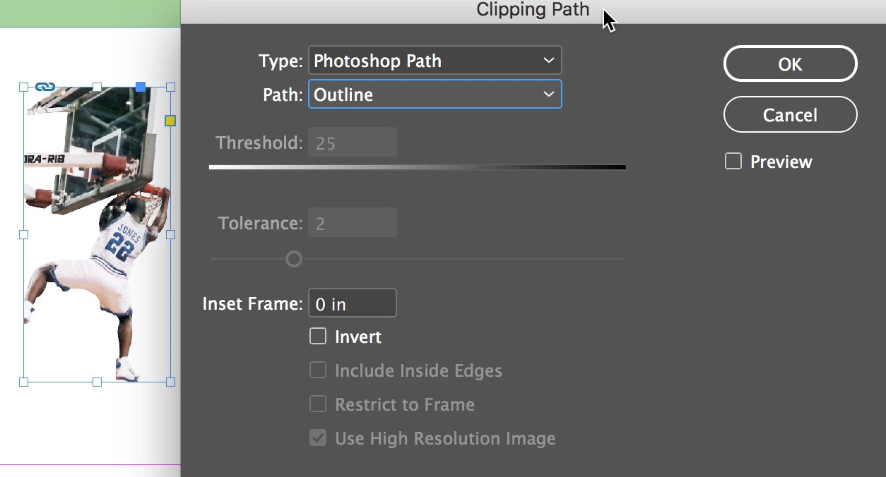 I recently ungraded to CC in December. Saturday I accepted an update and now Object's clipping path function will not work. I select the Object > clipping path > options > type > and then have "detect edges" and "photoshop path" as active and visible options to select. However, when I try to click or select either of them, nothing happens. I can drag down with my cursor over those two visible selections to click on them, but they won't "take." I've clicked Preview on and off just to check, but no difference. To be more clear, even the clipping path I made in Photoshop won't "connect" with the graphic in InDesign through the above route.
