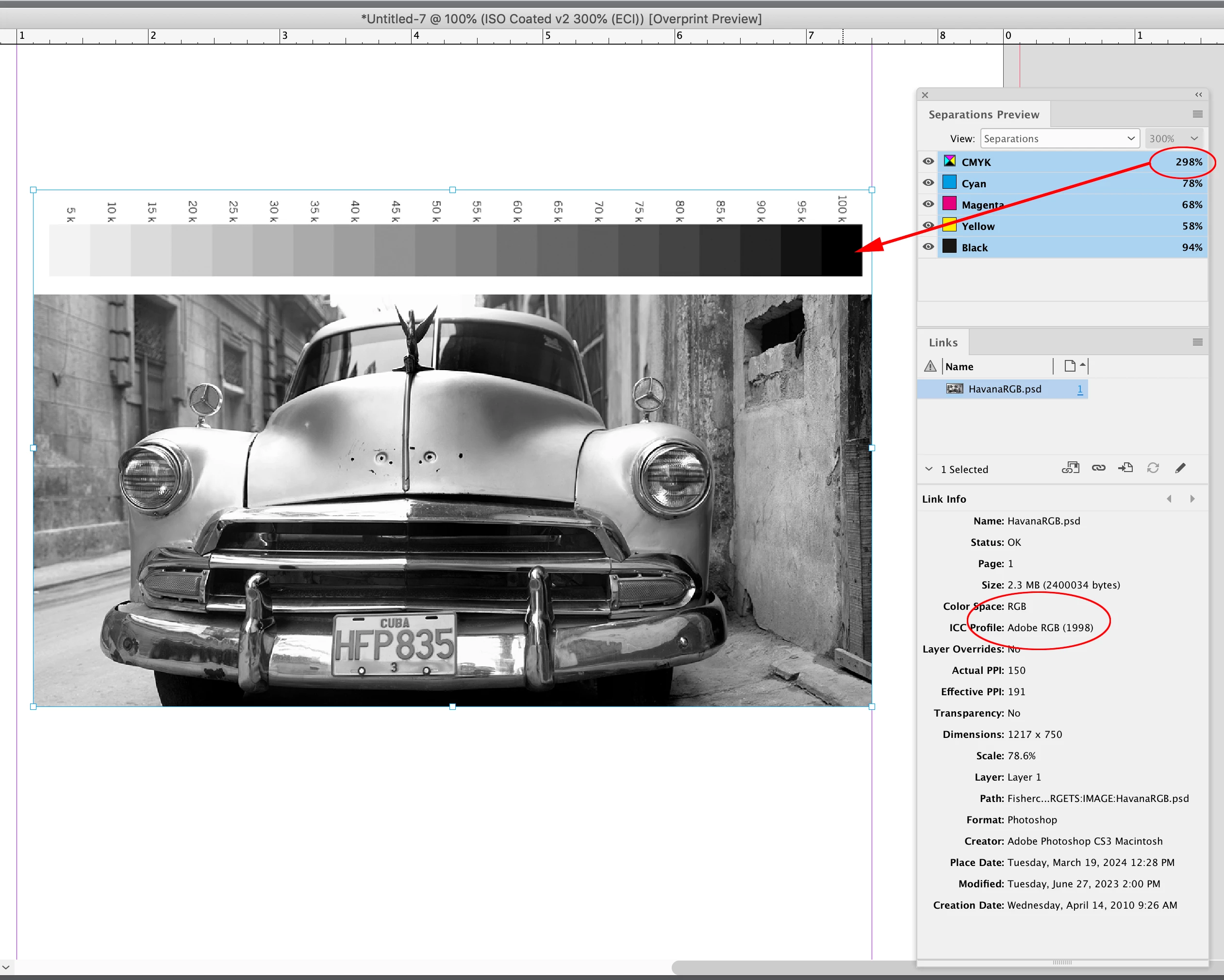 I have been provided some RGB TIFF files which are destined for an offset press for some magazine work. My workflow is setup to keep files RGB and on export to PDF-X1 and conversion (preserve numbers) to profile ISO Coated v2 300.