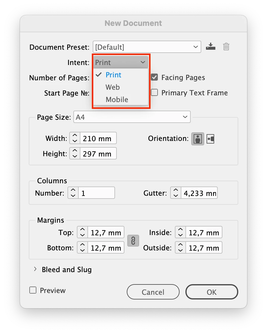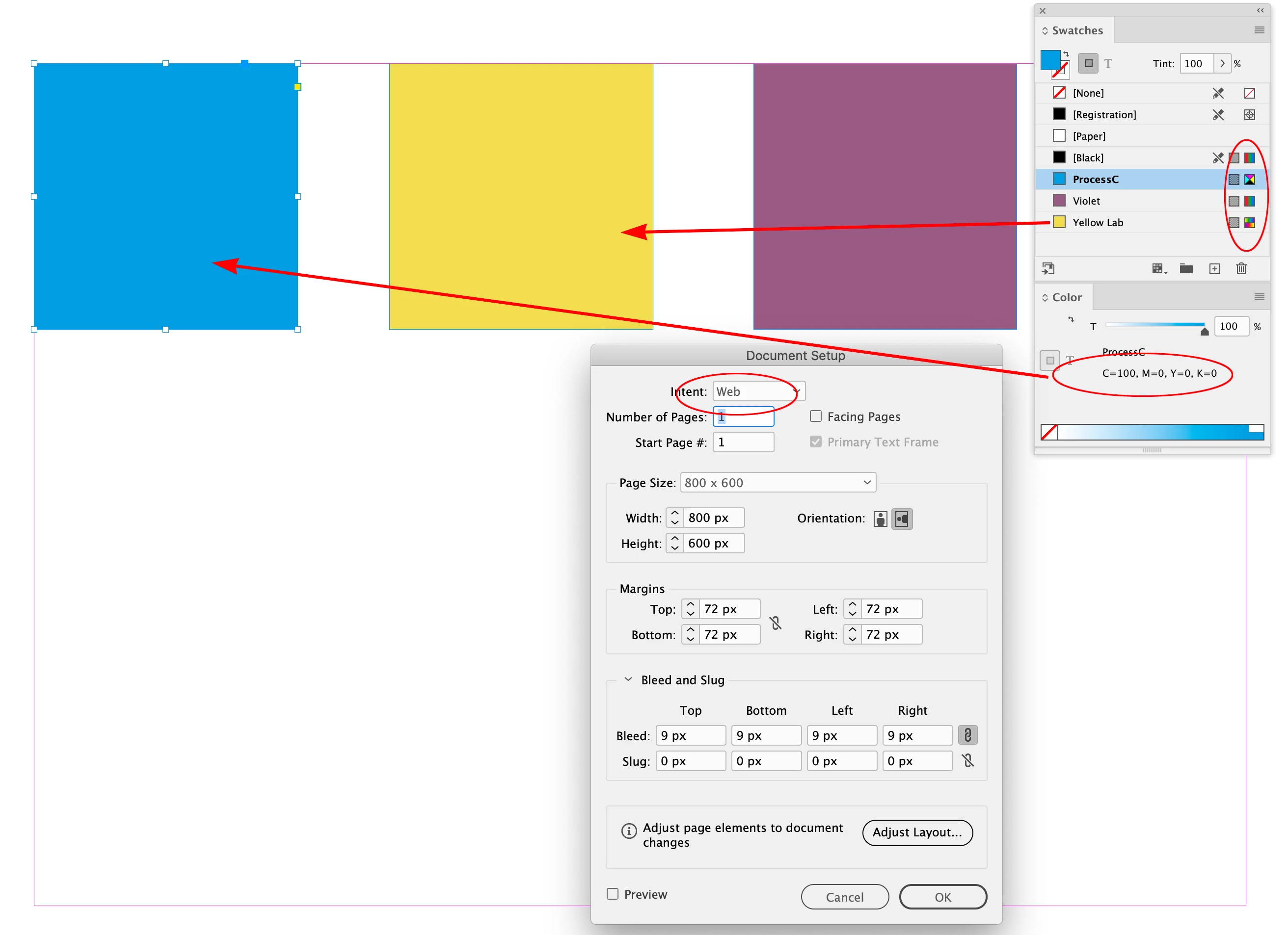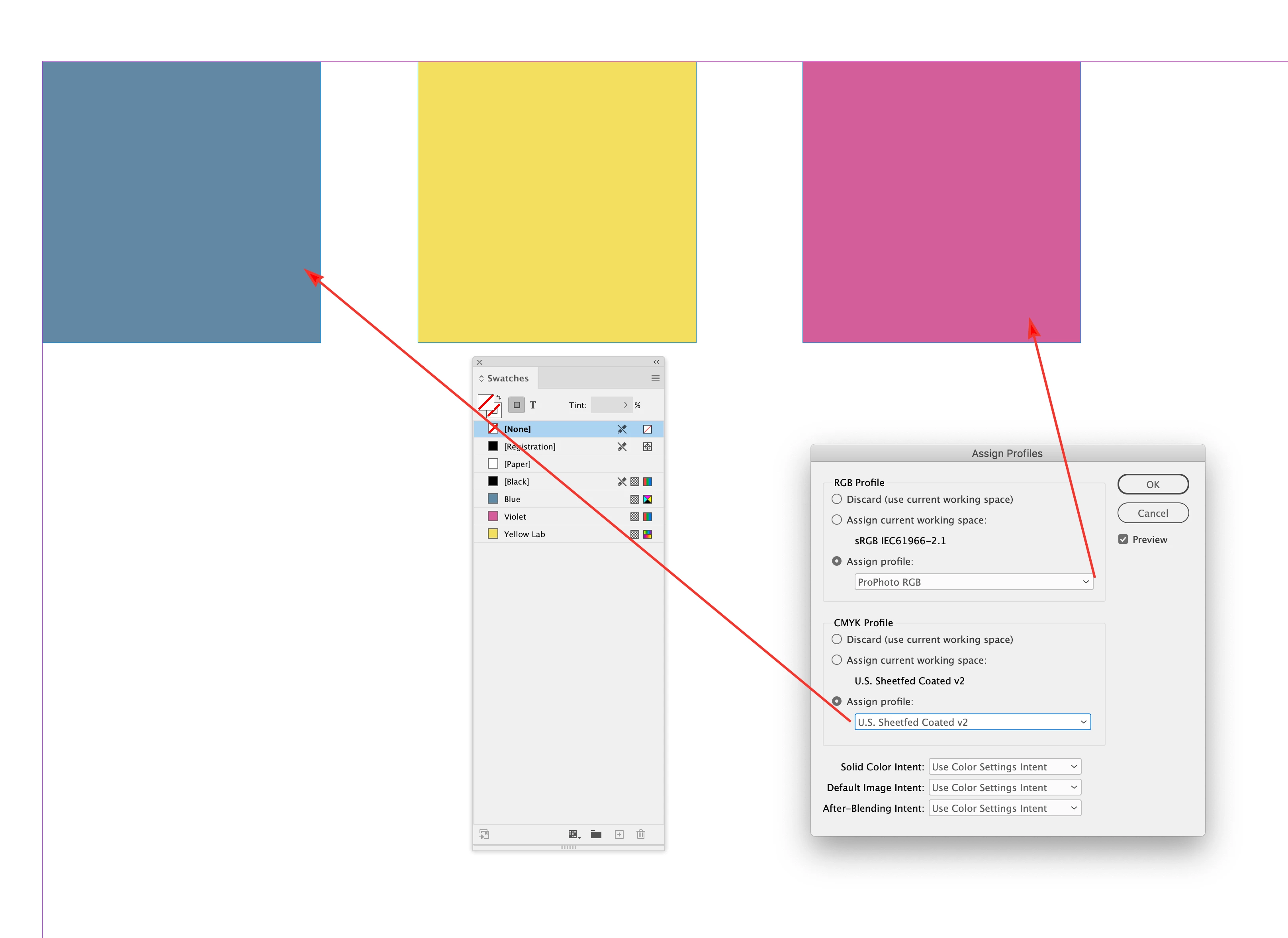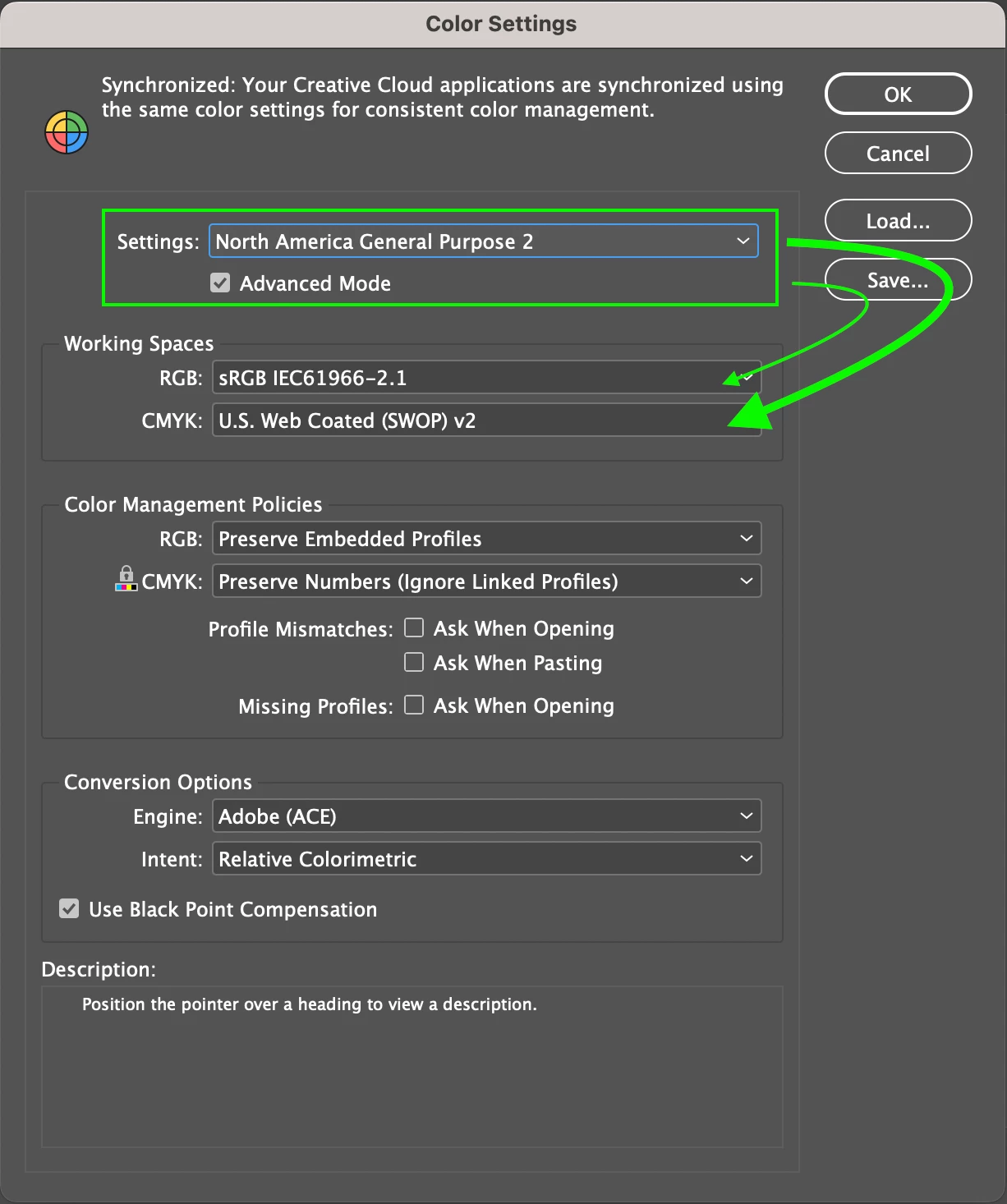 In Adobe Illustrator, I can set color more (RGB) and color profile (sRGB) from creating a new document.