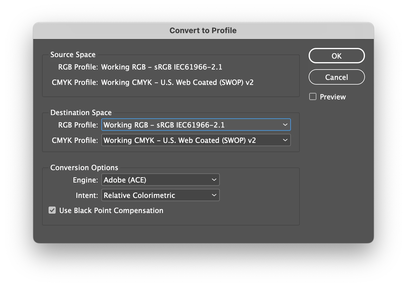 LLord KParticipantForum|Forum|3 years agoJanuary 19, 2023QuestionColor profiles mismatchForum|Forum|3 years agoJanuary 19, 20232 replies218 viewsWhy is the CMYK color profile different in Indesign (18.1) than I setted in Bridge, when I create a new document?The CMYK working space is also different then the source space. How is it possible?Bug