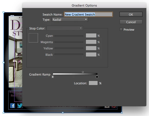 So, I go to start over. Tried to make a new gradient swatch on a new file. This time the whole area is grayed out. All I can do is change from linear to radial, and move the black and white scroll bar at the bottom. I'm hoping it will allow me to attach a screen shot here.