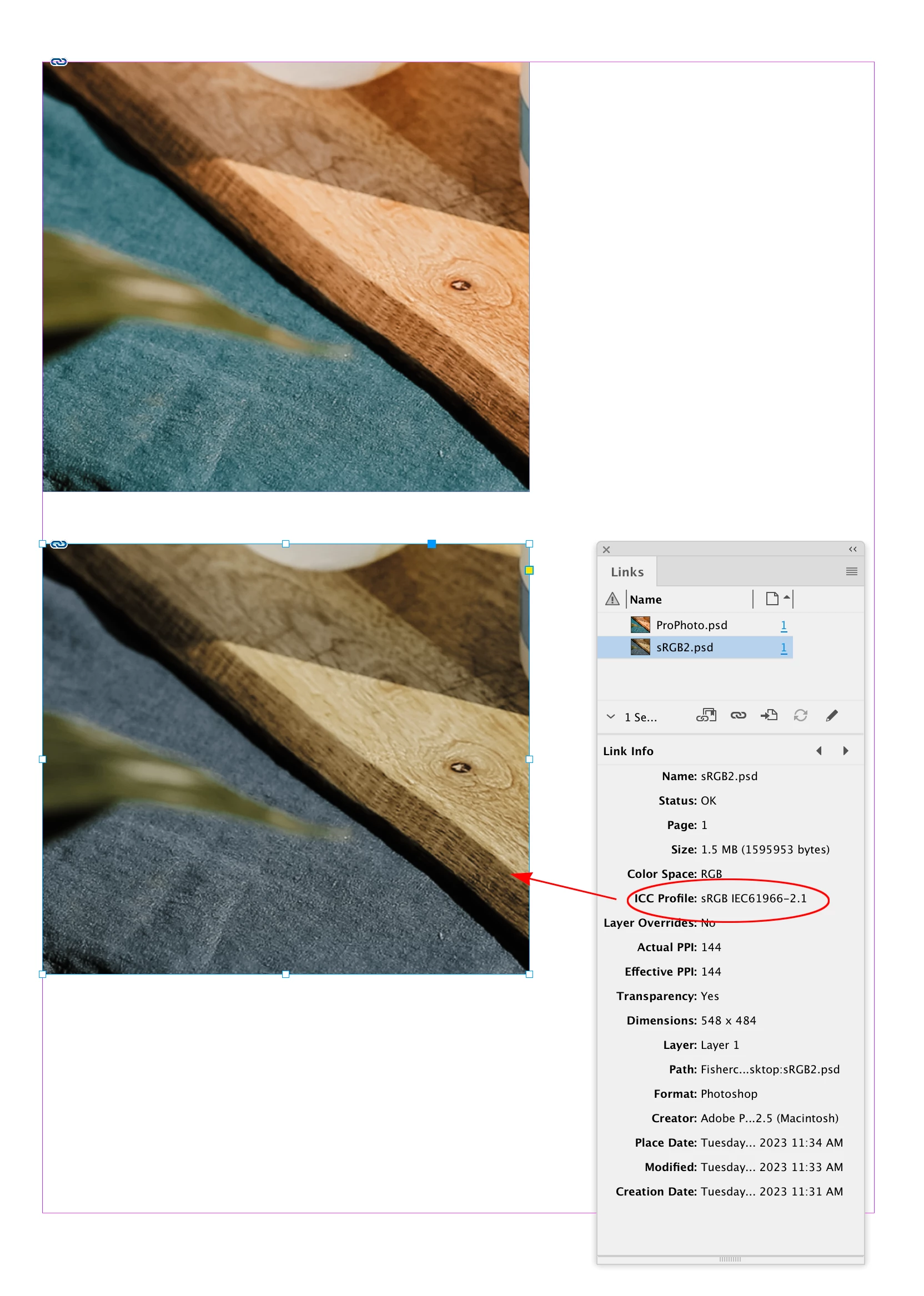 Colours displaying wrong on placed image in inDesign