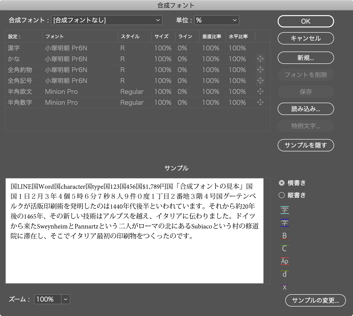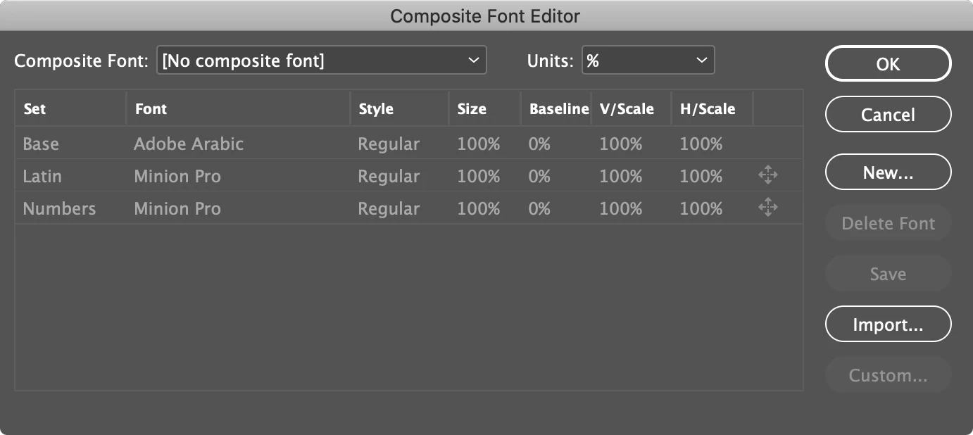 Currently, we open old documents with a composite Japanese font that we created when we were using World Tools Pro, and as long as we have that document open, we can use the composite font in a new document. Nonetheless, it is a bit tricky and we want to create composite fonts for other languages (Chinese and Korean).