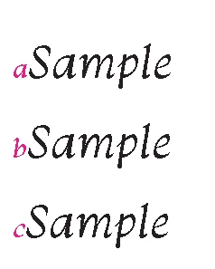 The alphabet has its own character style, while the reference content has its own different character style.