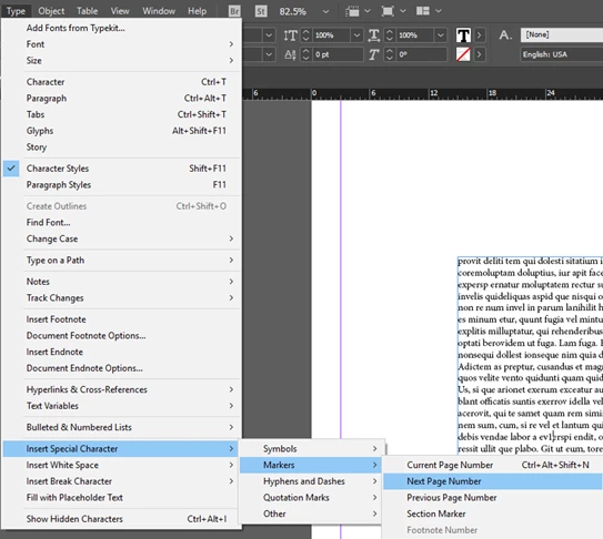 If your article is written on threaded frames, which means a single story,you can use the "Next page number" and previous page number" markers to point to the next page where the next frame of the story is and previous page where the previous frame of the story is respectively.