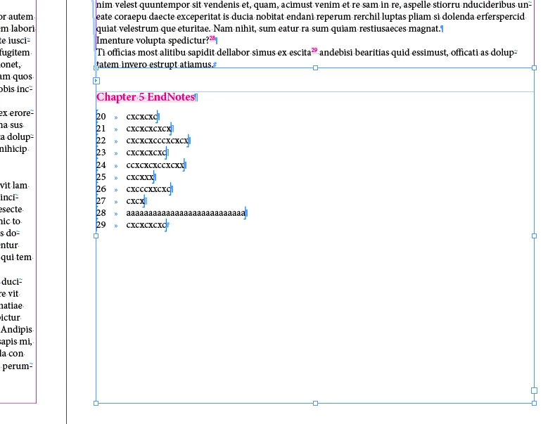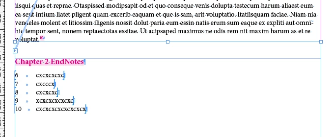 Note the para style of the End Notes Title is parametered to be at the top of the next text frame.