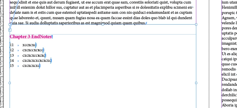 2/ Move this text frame at the end of the Chapter 1. If needing, keep cool and add other text frames on the following pages to keep the End Notes of the chapter 1 together.