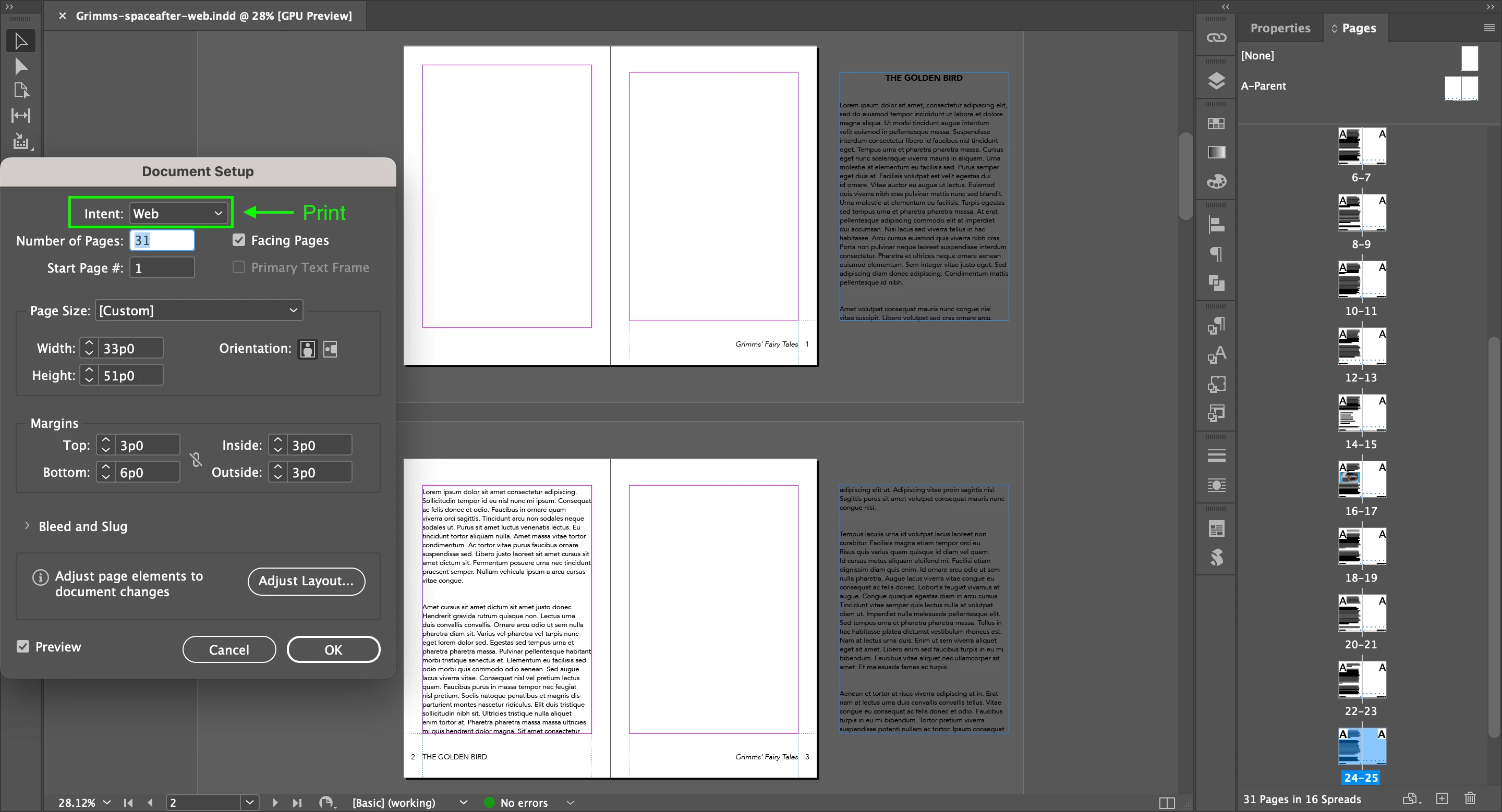 I converted it to Web in Document Setup for RGB.