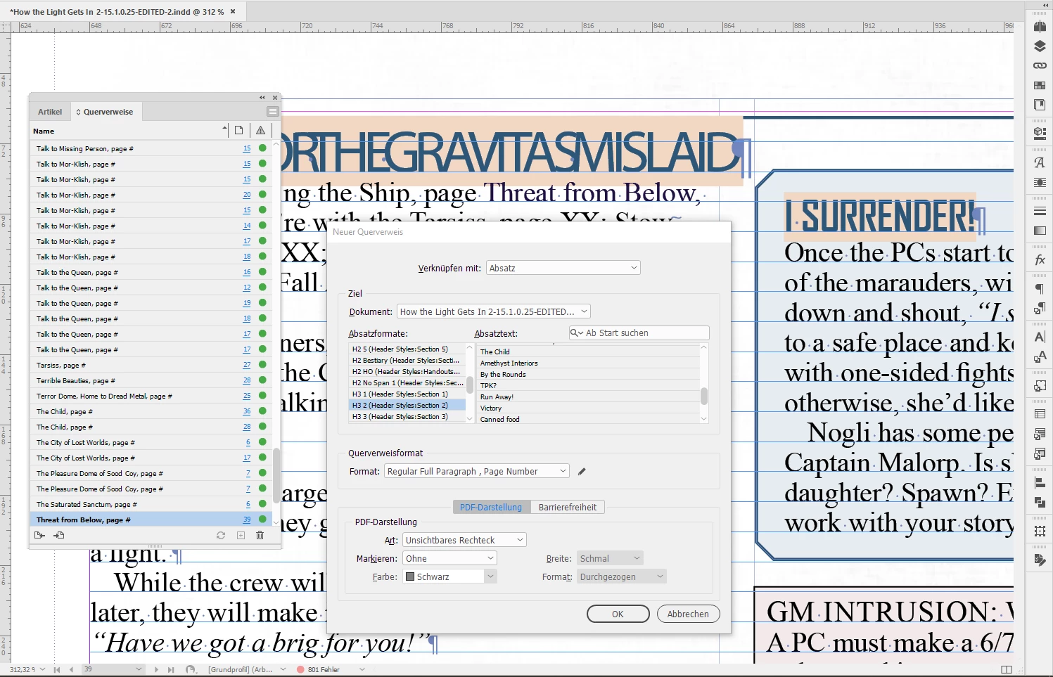 When I edit (add a cross reference, add a paragraph, delete the spread) my file on a certain page, InDesign hangs. I need to use Task Manager to kill it. 100% repro.