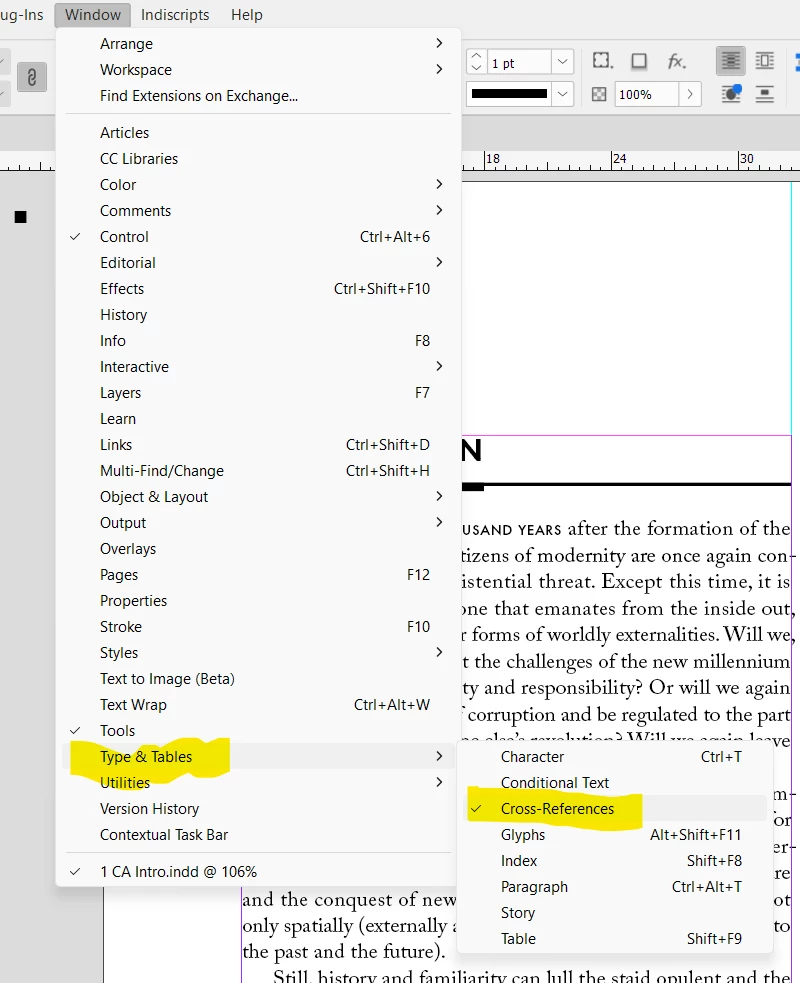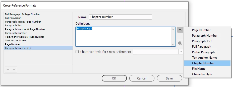 Now I want to insert a dynamic Cross reference from one chapter to another:
