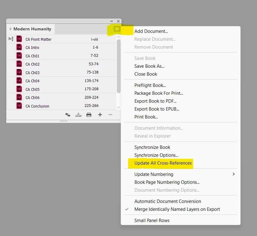 CR to other chapter files in same book