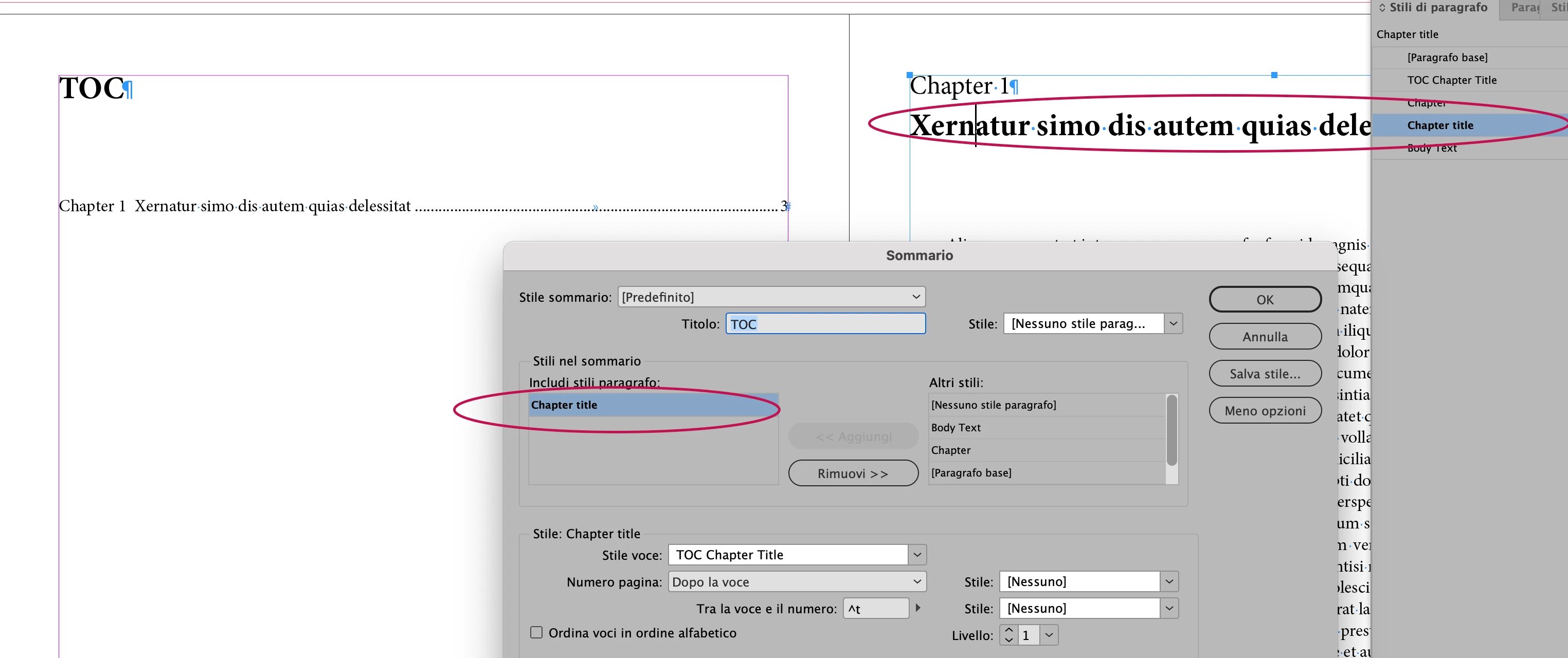 How can I get in the TOC Chapter the content of "chapter" followed on the same line by the contenbt of "chpter title" and the page number.