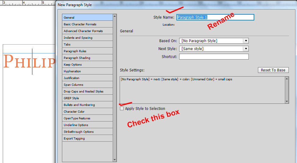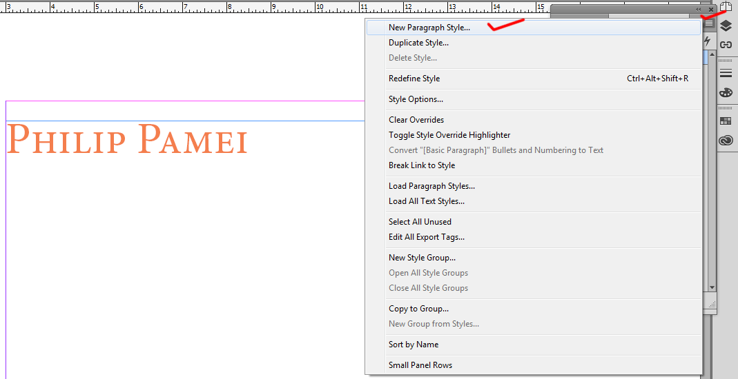I'm trying to create a paragraph style from selected text in InDesign CS6 (Mac). There has to be a simple command for this.