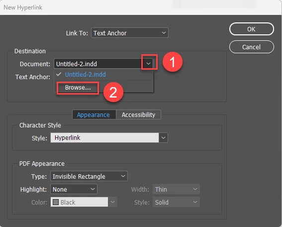Creating hyperlinks to different documents