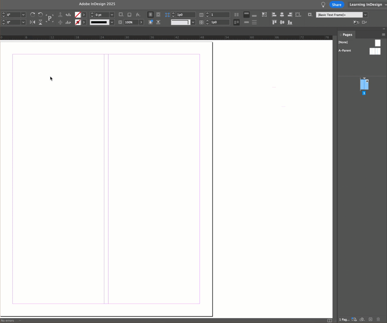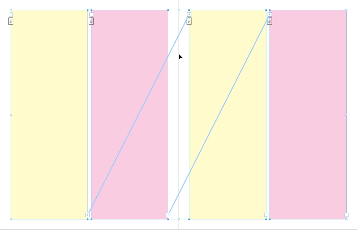 I thought I would create two text frames in Master Pages, and link the frames from the even page, to those on the odd page.