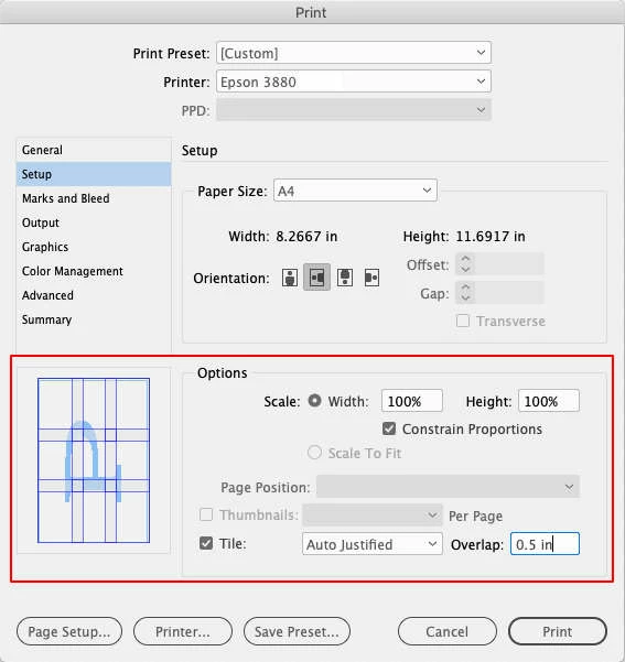 I am creating a large wall graphic in Indesign and need to crop it into smaller sections. I am not sure on the best way to do this. I tried exporting it into Photoshop but my file exceeds the document size. Any advice?