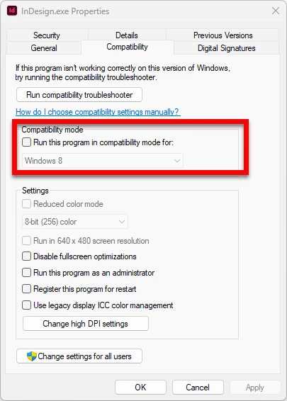 CS5 apps, including InDesign, have stopped responding
