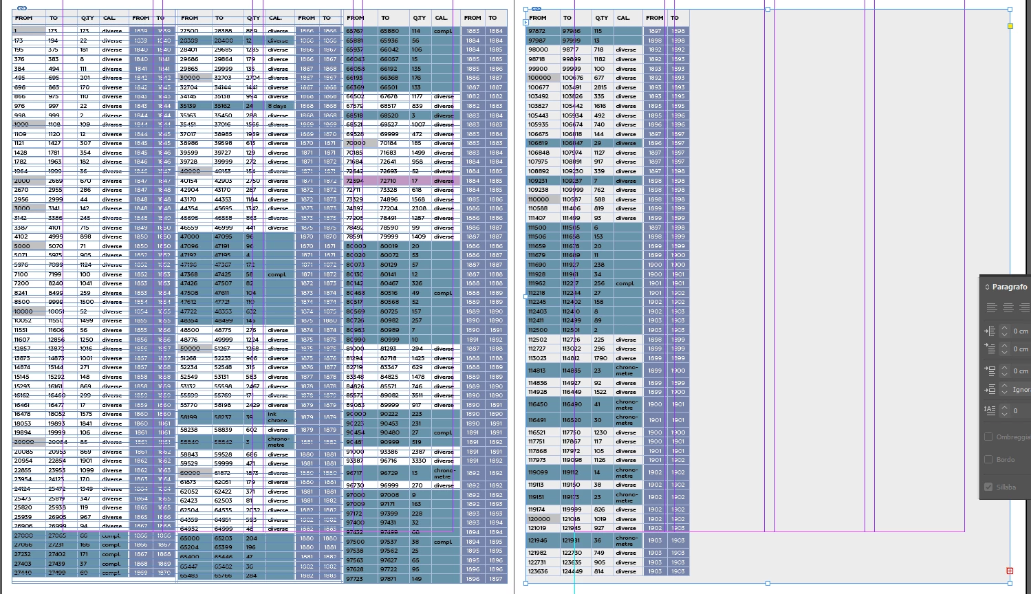 I have a really long table linked to excel, that needs to be continued 3 times on the same page as well as on multiple pages, as you can see on the screenshot i attach. To do so, i created a first big text frame made of three columns and activated auto-resize and custom baseline.