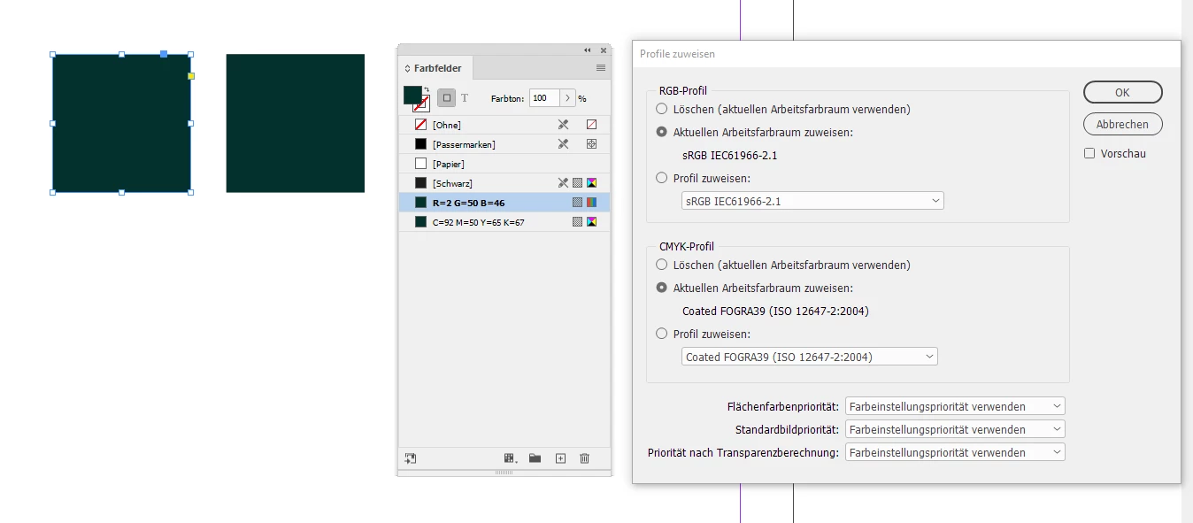 Dark green RGB turns blue when converted to CMYK