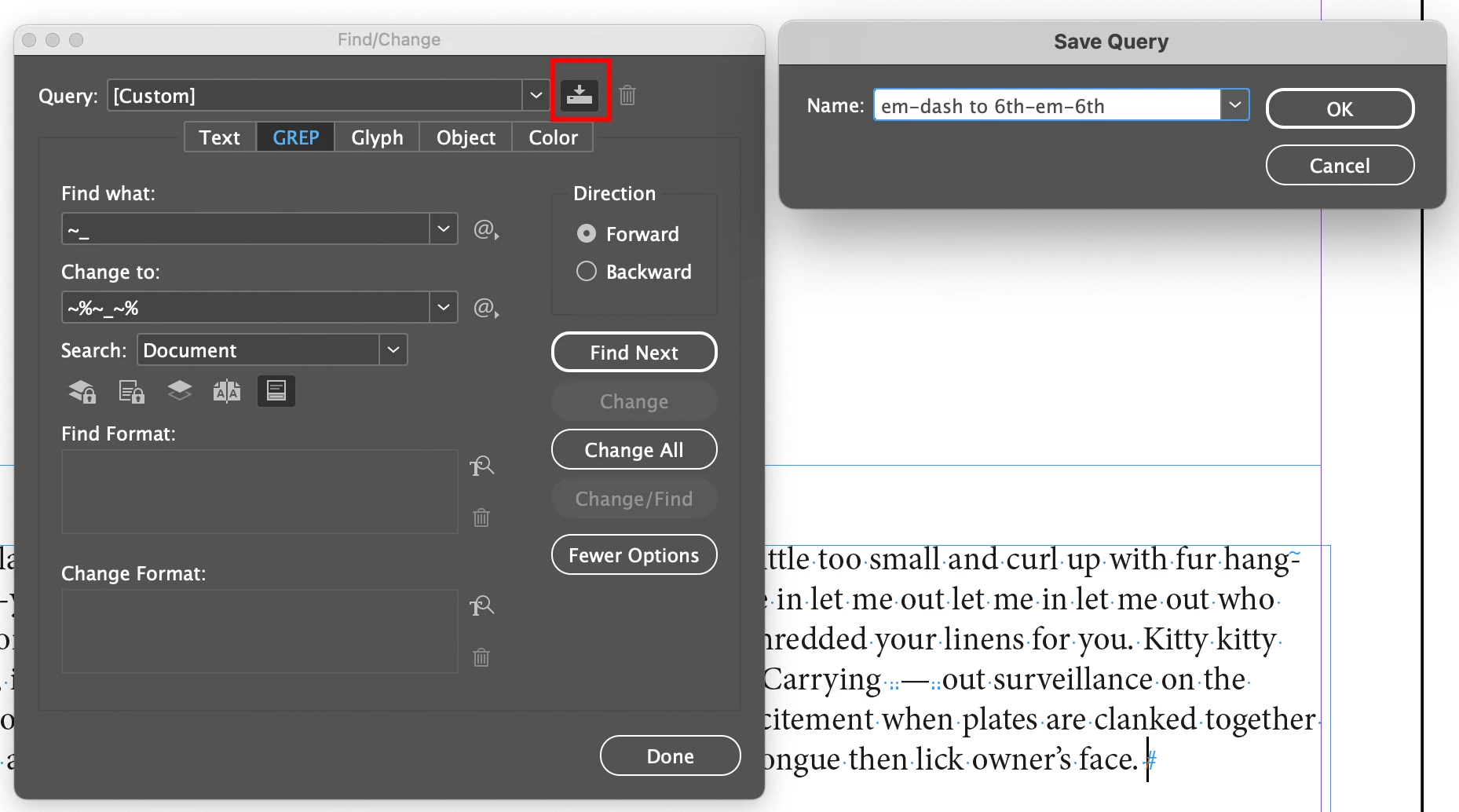 Can anyone help me with a GREP for making dashes consistent? I want all dashes to be sixth space, Em dash, sixth space: