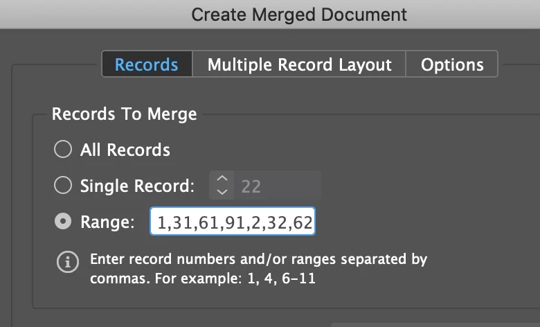 This works perfectly for PDF files which I can import using the script; however, I have recently been asked to use EXCEL files rather than pdfs and while I can do a data merge with multiple records, the problem I'm running into is that it puts addresss 1-4 on the first page and 5-8 on the second page, etc. So rather than having a finished stack of addresses 1-100, I have 1,5,9,etc and this does NOT WORK for production.