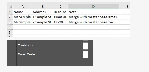 Record 1 - column C contains 'Xmas20' this person should only receive page 1 of the InDesign file or 'Xmas-Master'