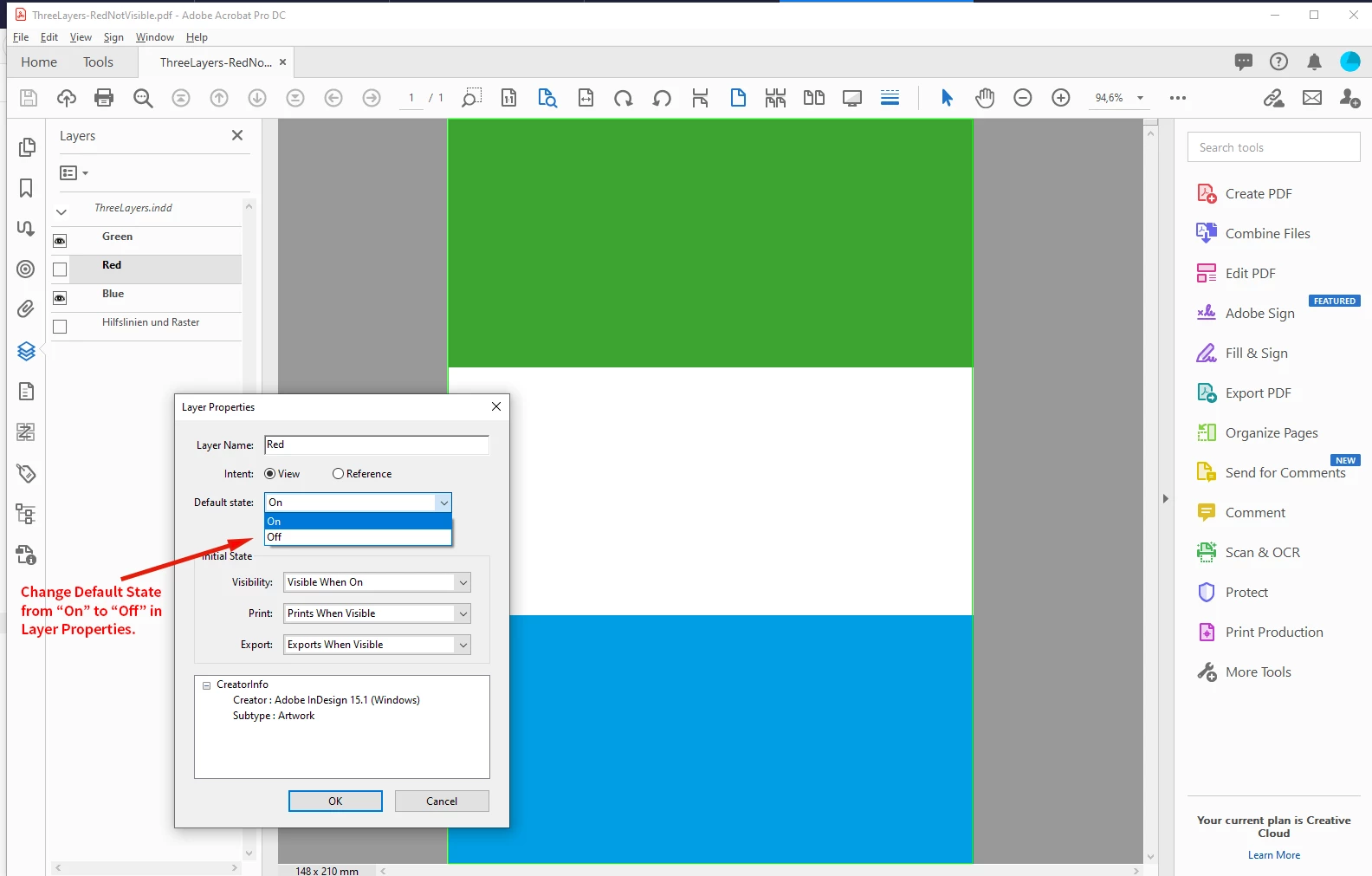 Lade ich diese pdf in Indesign ist die Ebene sichtbar. Was muss ich tun, damit die Ebenen in Indesign nicht zu sehen sind?