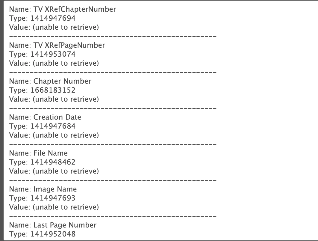 I am wondering if there is anyway of removing the deafault list that inDesign uses. e.g TV XRef Chapter Number, File Name, Image Name, Creation Date etc