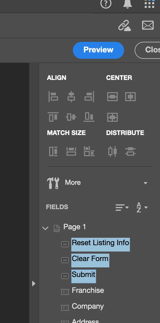 Worth pointing out here that if you are exporting to PDF from InDesign, then buttons won't export if you choose Print PDF from the file type dropdown when exporting. You'd need to select a specific option ("Appearance Only" in the "Interactive Elements" dropdown of the General section of the Export Adobe PDF dialog) to even see the non-working buttons onscreen in Acrobat.