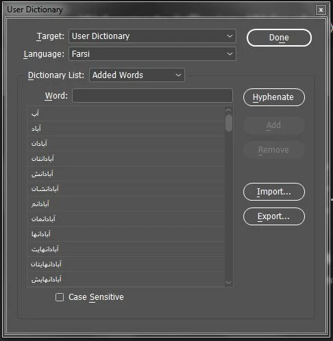 If the language dictionary includes a question mark icon next to it, select the dictionary, click the Relink User Dictionary icon, and then locate and open the user dictionary.