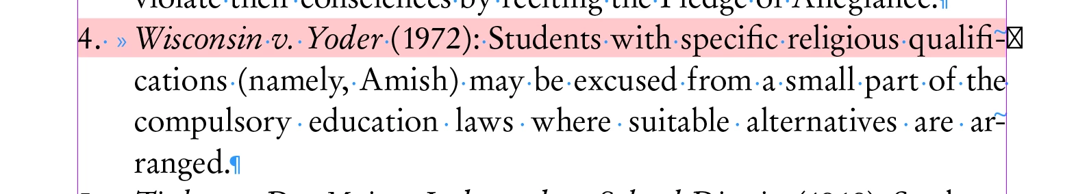 In diagnosing a pink highlighted line with a "box" symbol outside the right margin, I discovered the following.