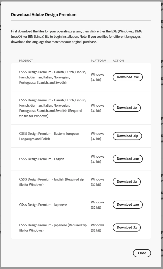 Downloading a previous version