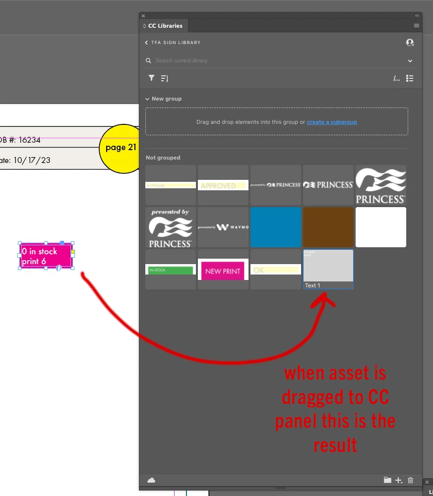 What you have done is to copy the text. If you want the frame's appearance copied, click the + at the bottom of the CC Libraries panel, and from the menu, select "Graphic". It will show in the CC Library as a Graphic.
