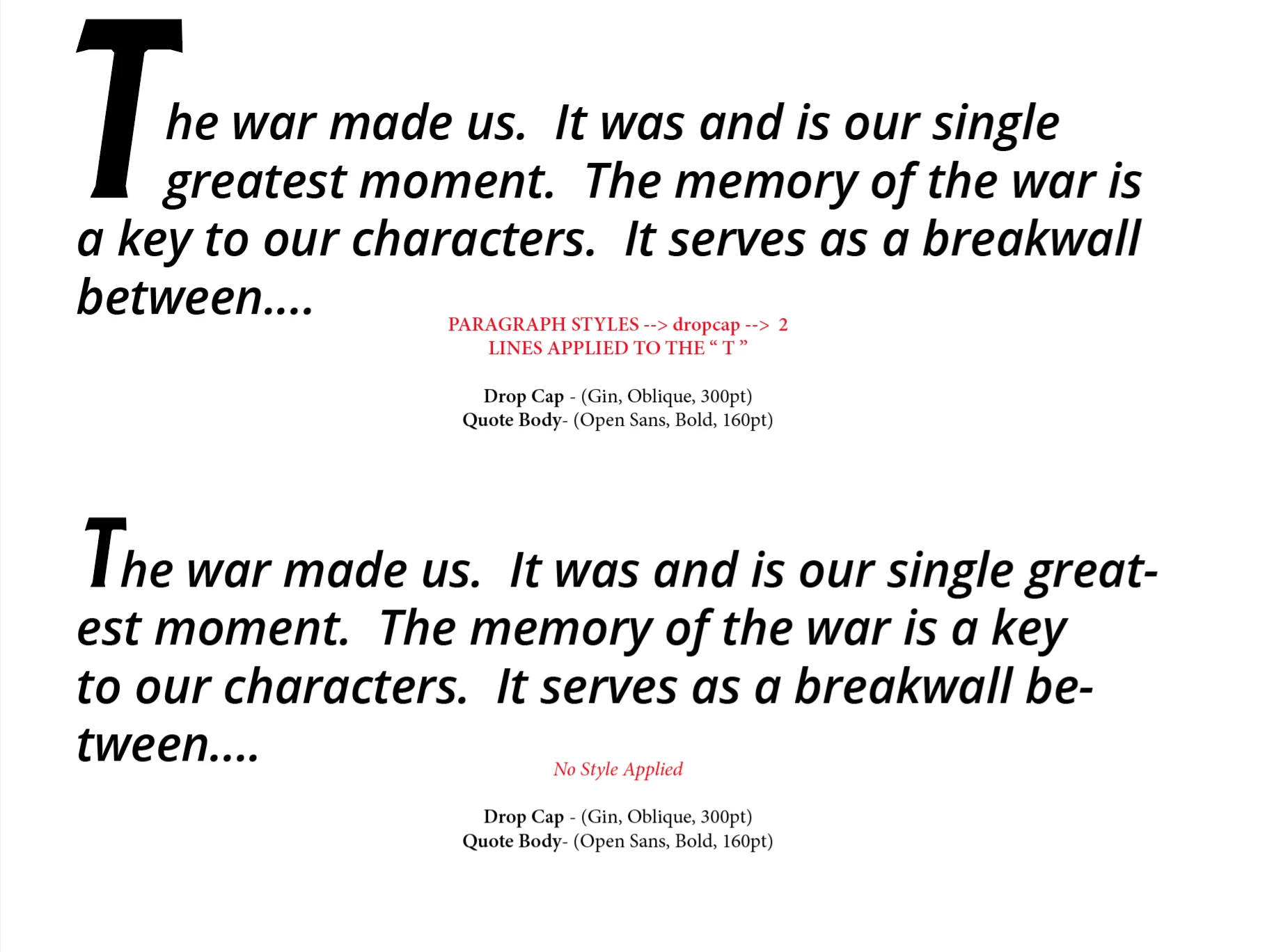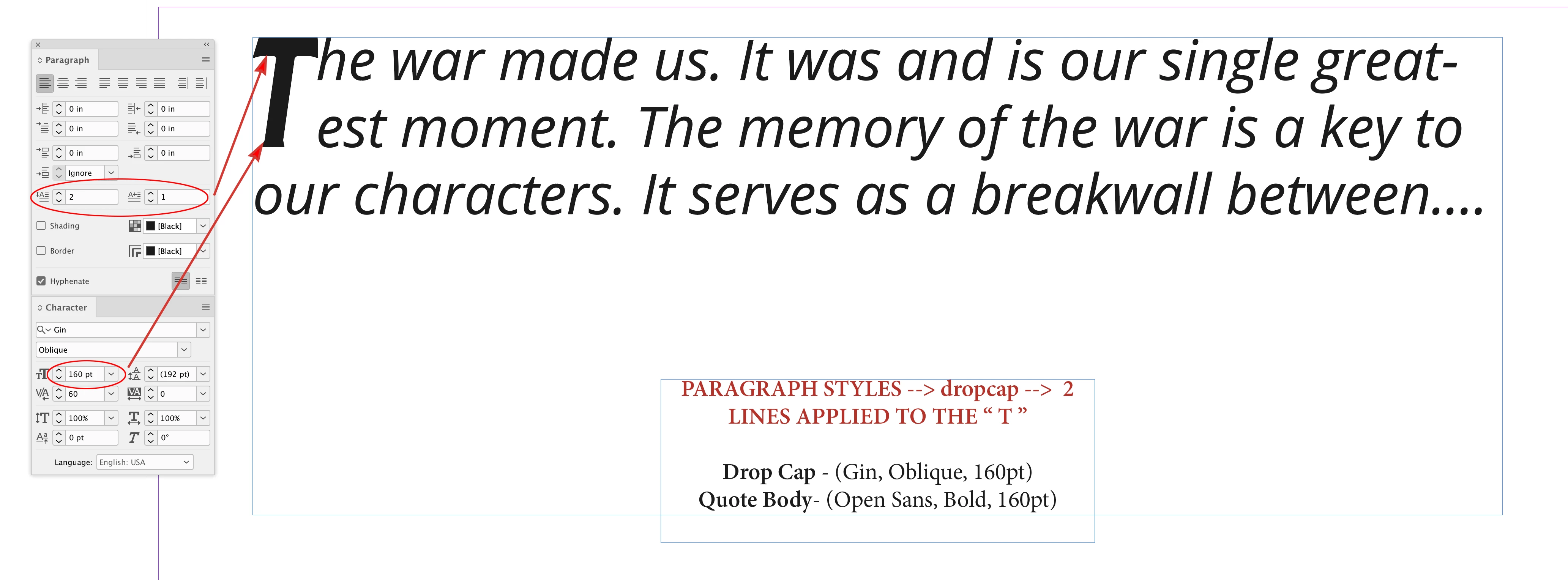 I noticed that when I try to change the " T " in paragraph Styles and then drop cap settings to be two lines down, the drop cap itself starts to change in size yet still shows as 300pt. It is obviously not the same as the 300pt below. Do I have some settings not on or what? Please help!!!