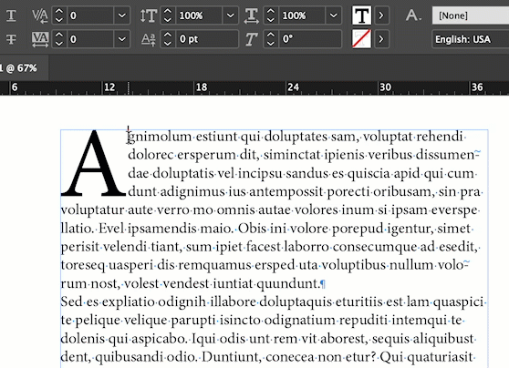 One more variation on the same theme—I use Kerning. I click my insertion point in front of the first character after the drop cap, hold Alt/Opt and tap the right arrow key to push the text to the right. If I go to far, I use Alt/Opt and the left arrow key.