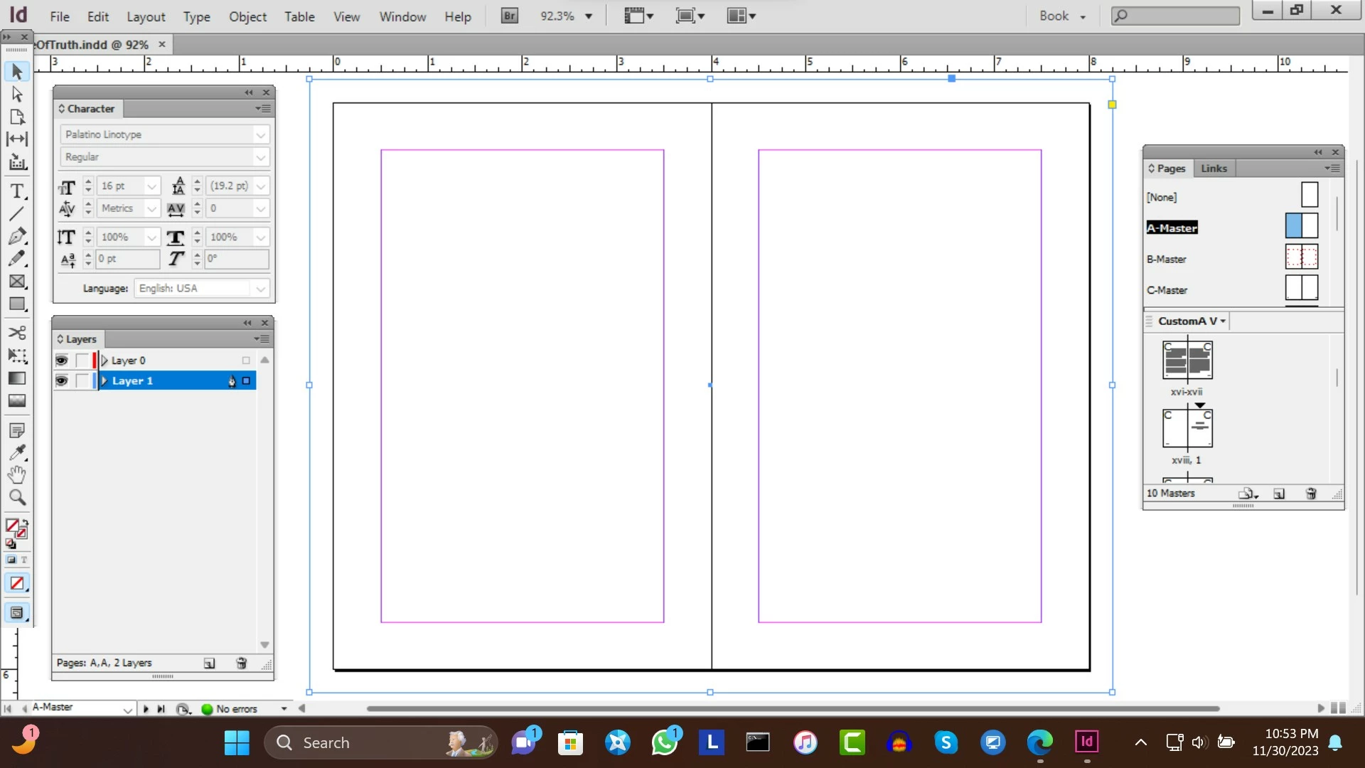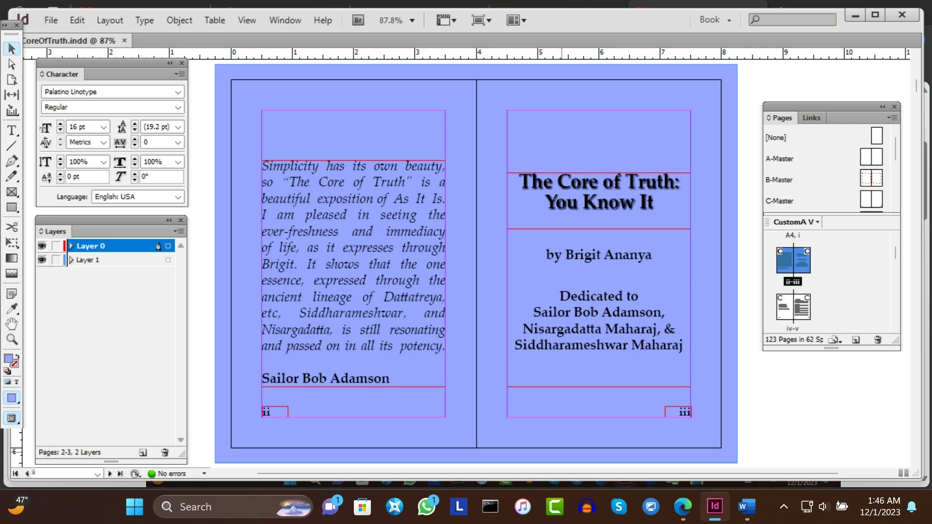 Here is the page in InDesign where I placed a drop shadow for the title "The Simple Truth: You Know It":