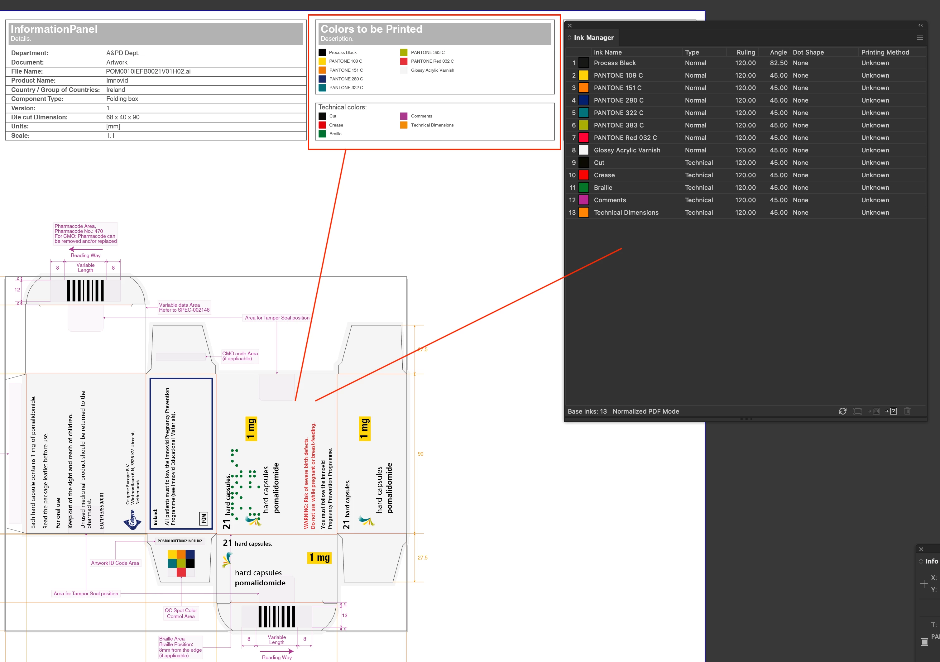 I have to create an Information Panel with all the information of the Indesign Mock-up: File Name, Dimensions, Versioning, etc. That's not an issue with the variable data in Text but I have to insert in the Panel the colors used in the document...