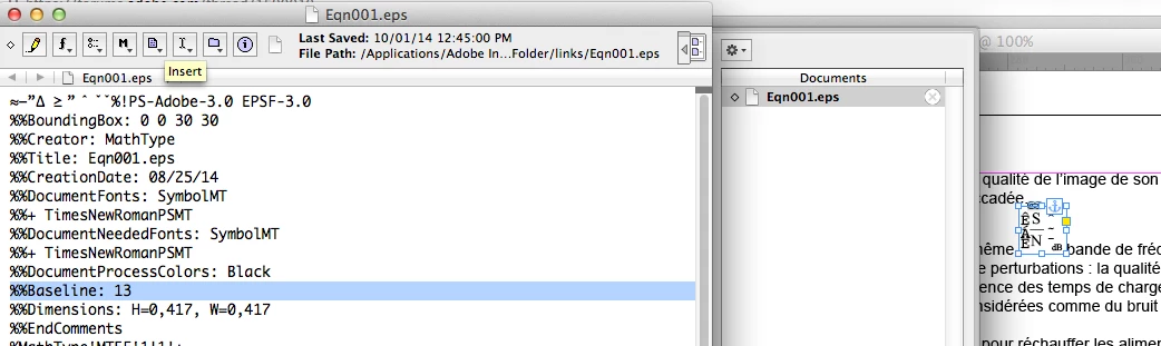 1. Select the Math type equation that is already imported in Indesign