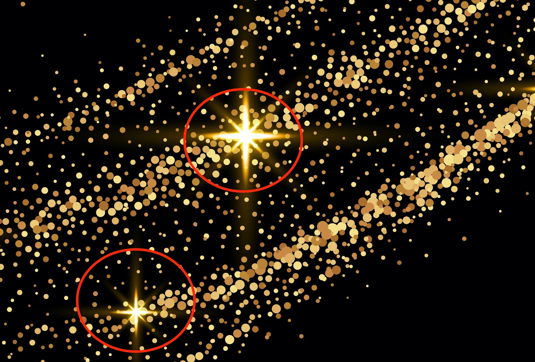 I have this vector on a black background in Illustrator. The flecks of light in it are a gold tinge (created with a black/yellow gradient and set to Screen)