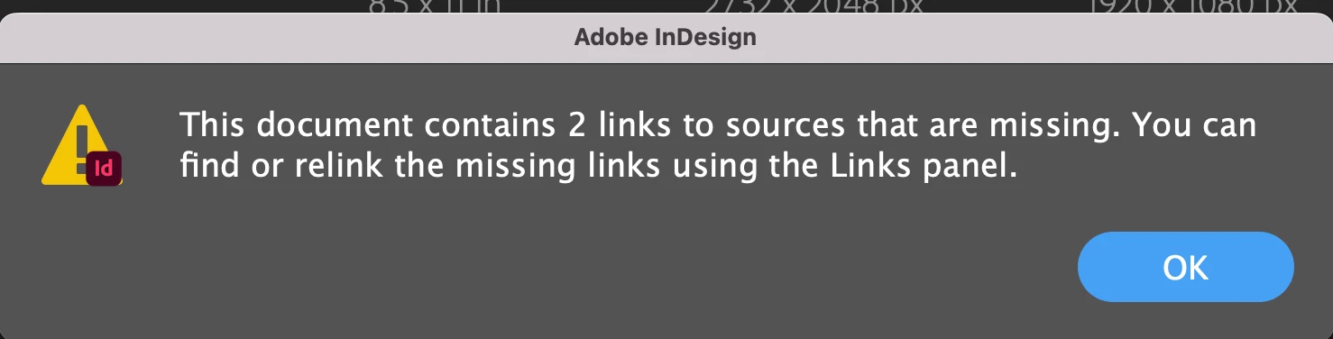 c) Release the mouse, the image automatically resizes, but is linked to where you have the image stored. You will see the below: (If you move the graphics file, or delete it, the above error message will appear.)