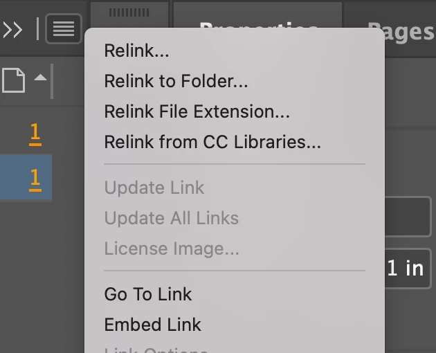 d) Click on the Links Panel pull down menu (the quadruple lines)