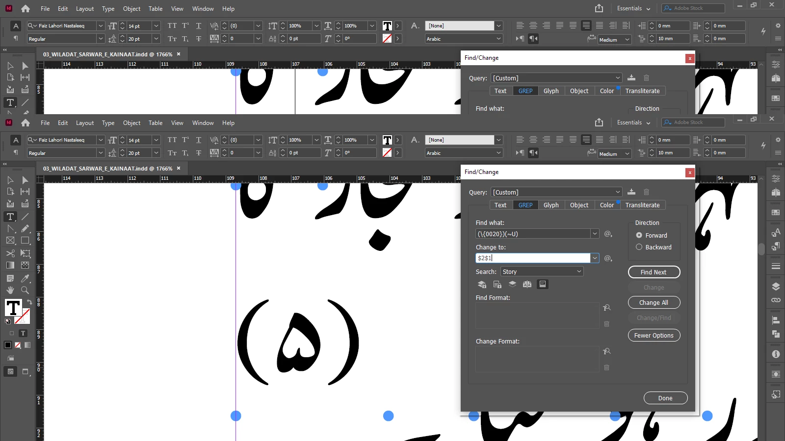 This is what I am entering in Find: (\{0020})(~U)