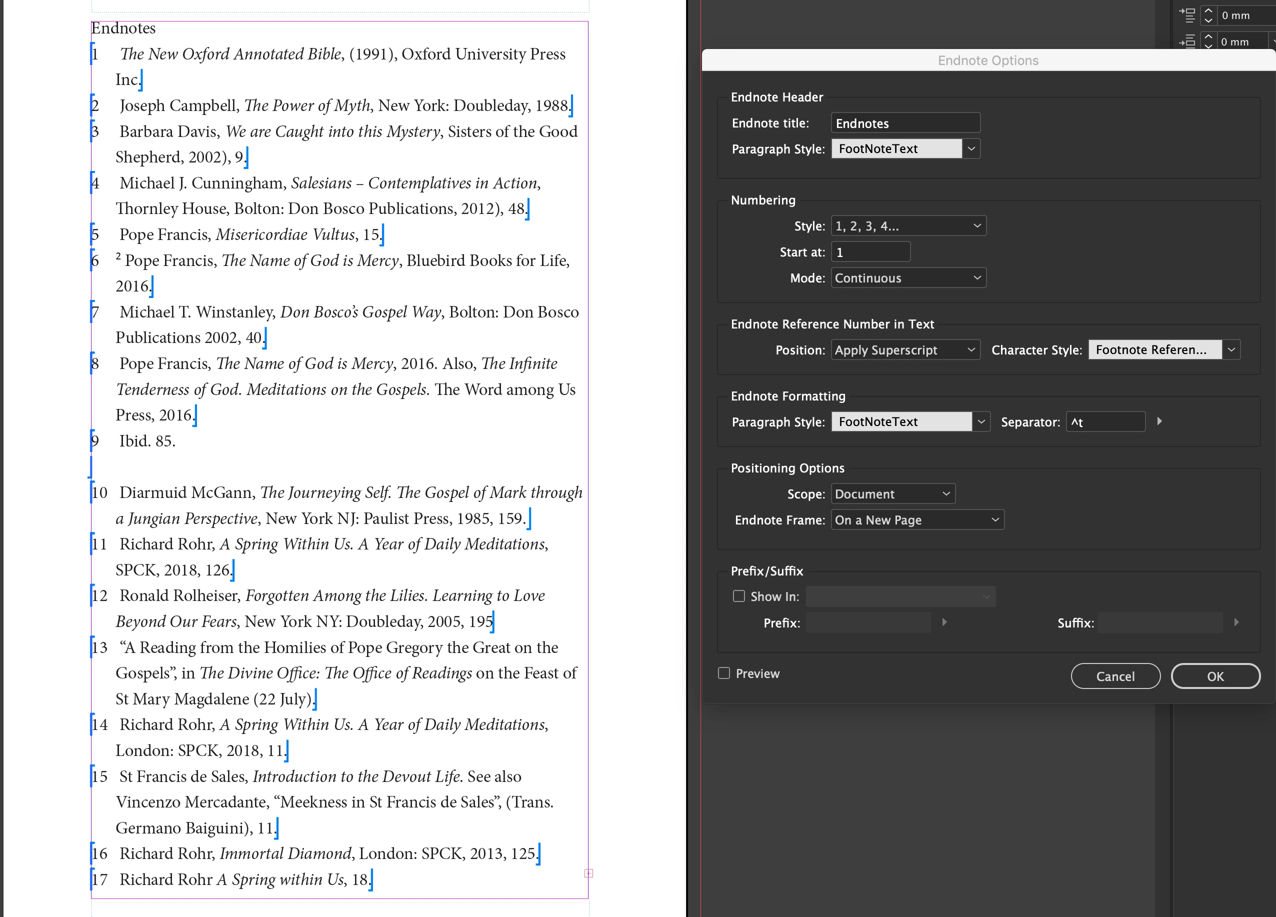The article about this deals with endnotes that have no paragraph overrides (e.g. italicised titles). Tried to set my doc footnote and endnote options to exactly the same settings and convert from end to foot which is fine until it gets converted, where everything gets wiped to naked, unformatted text.