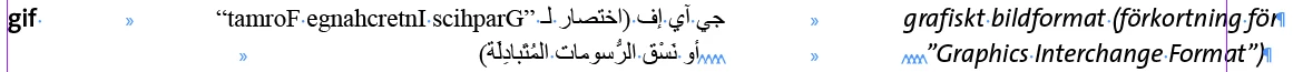 The Arabic text is itself part of a paragraph in English, but formatted as correct Arabic using a character style.