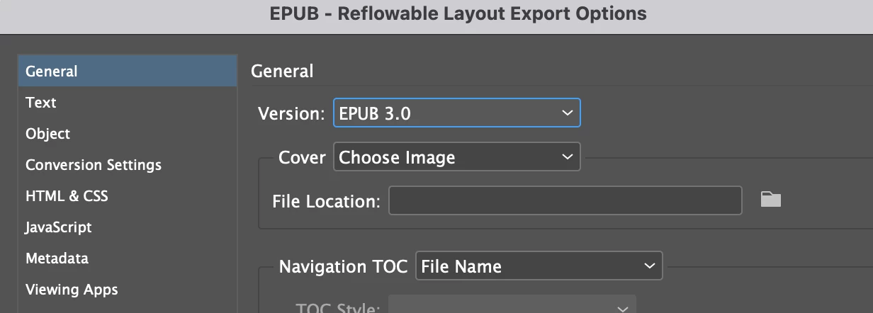 In EPUB 3.0, the Table of Contents doesn't appear.