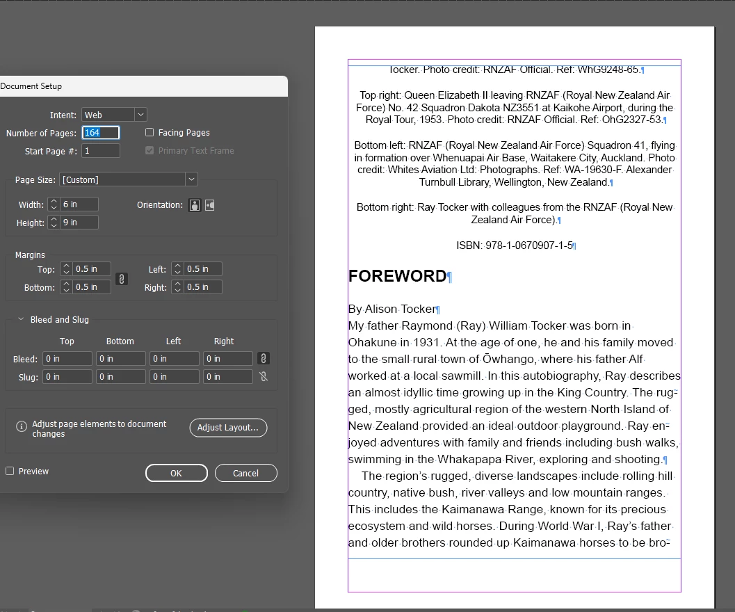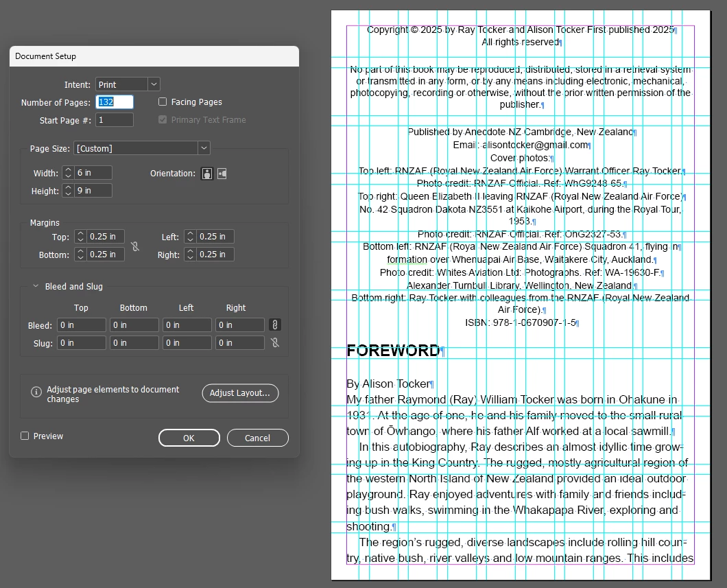 Hi, I set up my epub for print by mistake at the start as still learning. Partway through I’ve changed it to a web document and changed the margins to 0.5 in rather than 0.25 in. I can now see blue lines at the top and bottom of each page, sitting inside the red lines top and bottom. Is that ok?