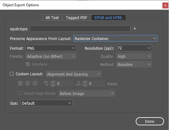 Info: I get the following pop-up when I'm exporting to ePub (fixed layout):