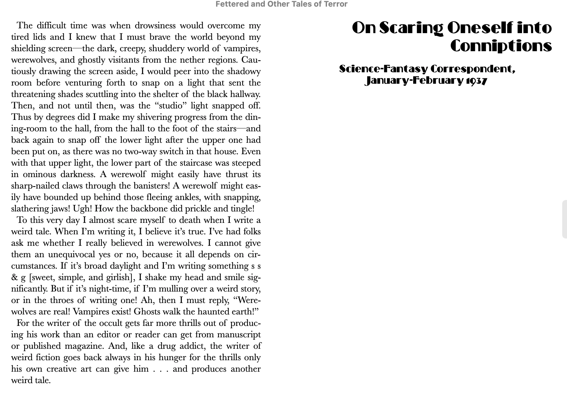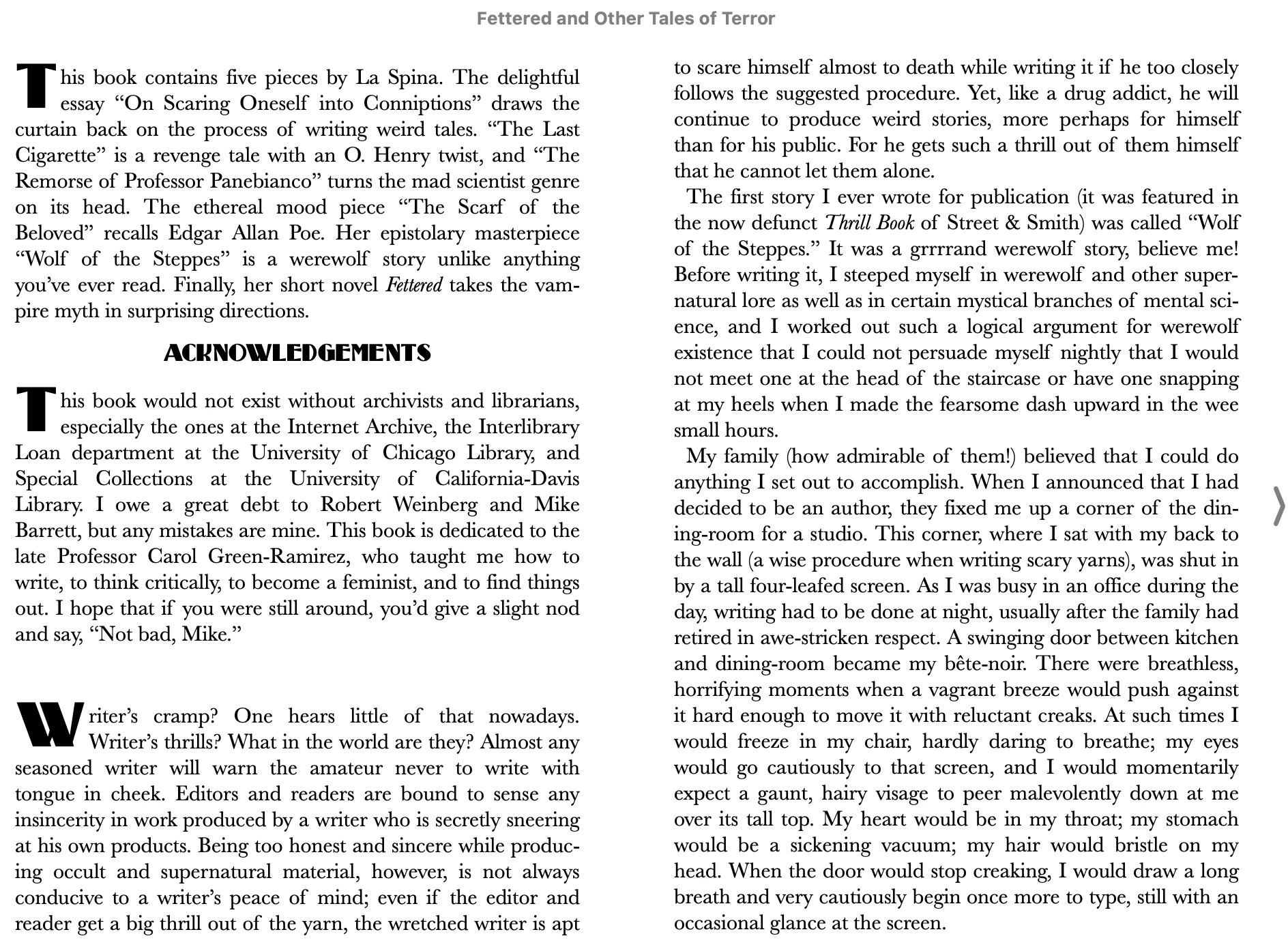 "Writer's cramp" is the beginning text of the section called "On Giving Oneself Conniptions." What am I doing wrong? Every other break works fine.